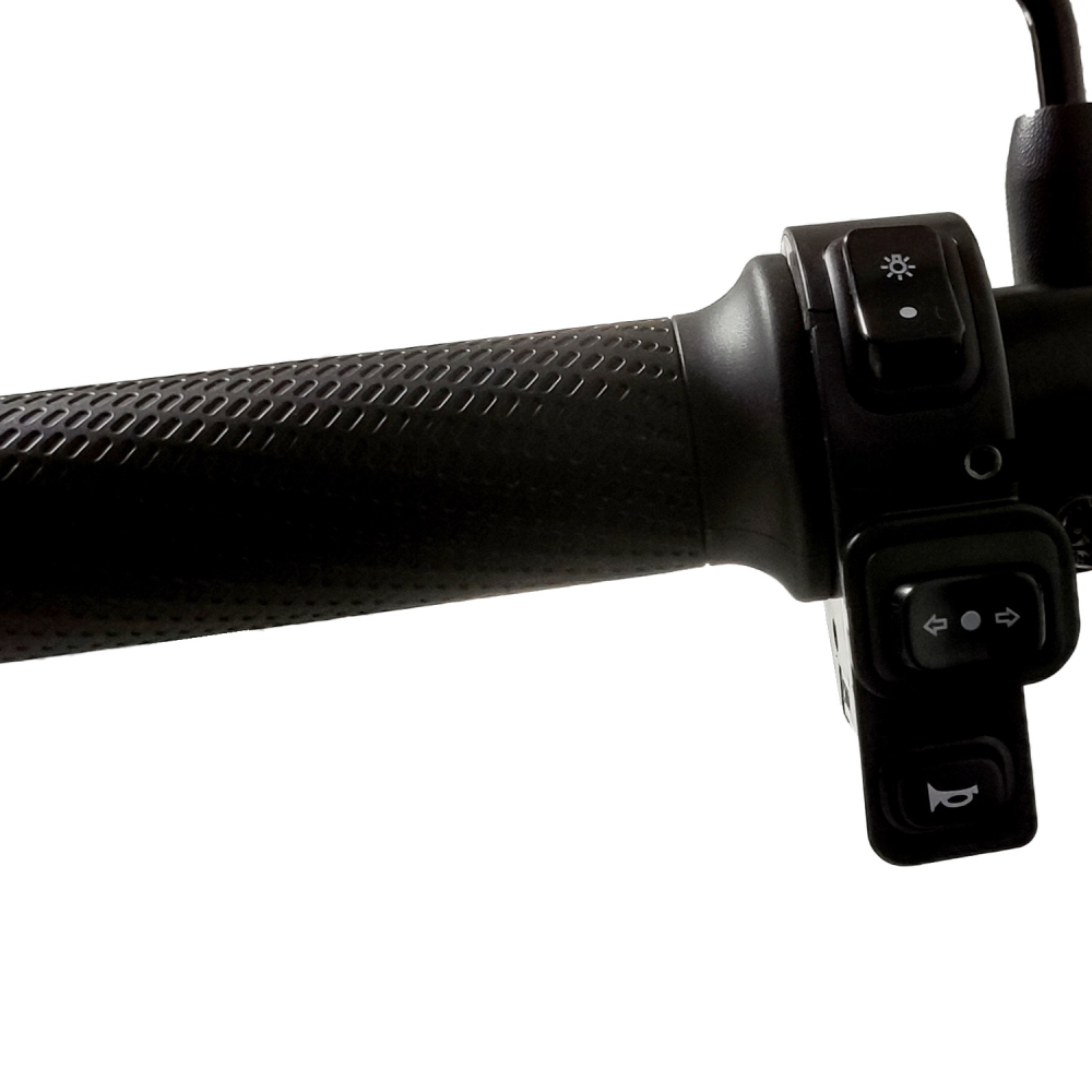 Аккумулятор Li‑ion 28.6 Ah (48V) обеспечивает до 80 км на одном заряде (полная зарядка ≈ 9 часов). Двигатель 800W разгоняет до 45 км/ч, управление — ручкой газа и 3 режимами езды для экономии или динамики.