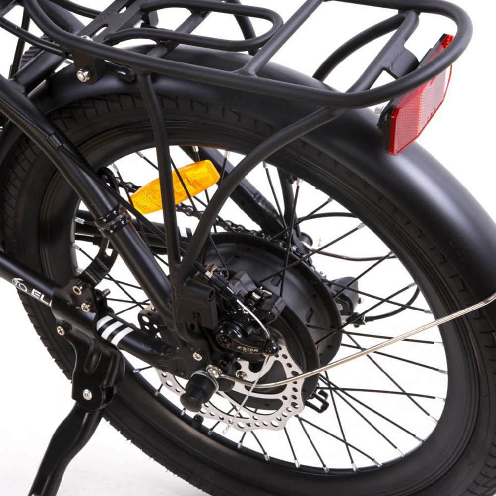 Спереди есть амортизационная вилка, которая позволяет сглаживать неровности дорожного покрытия. В комплекте также идет багажник.
