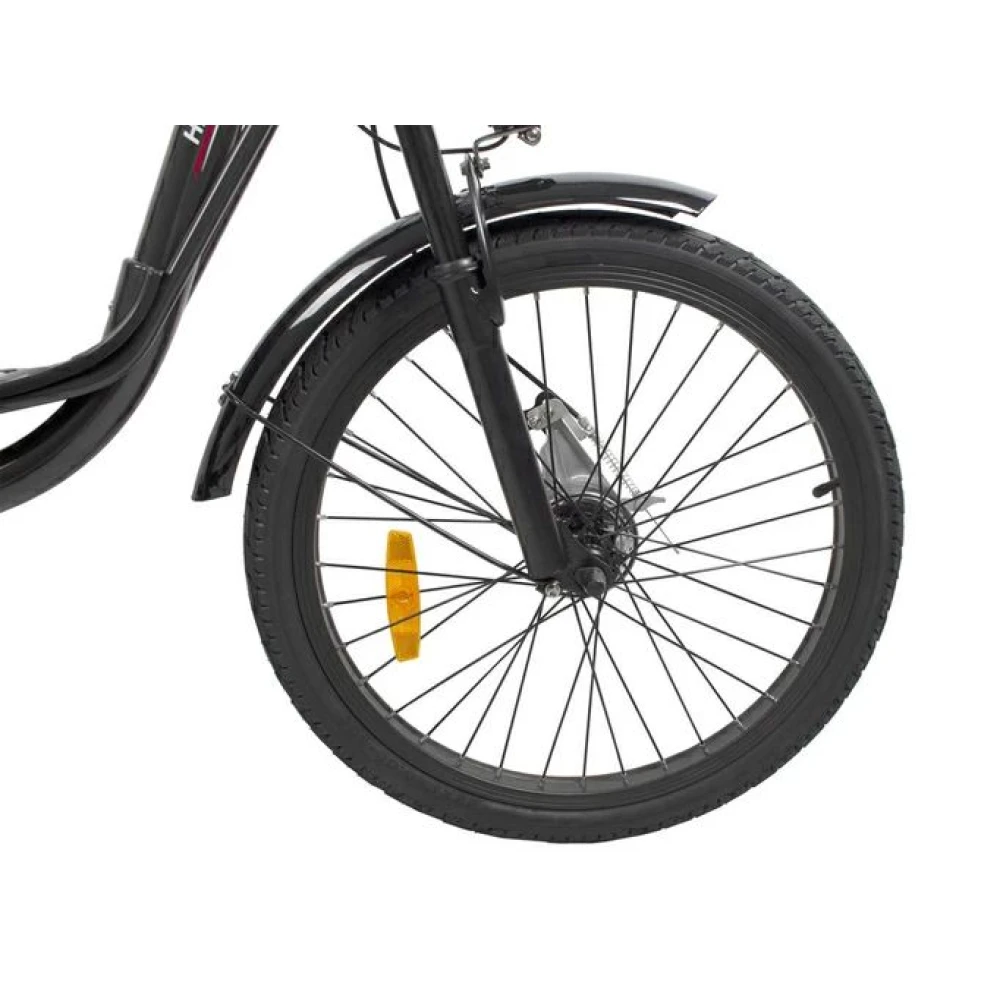 При максимальной грузоподъемности 130 кг и параметрах электродвижка 350 Вт скоростные параметры достигают 25 км/час, а максимальный запас хода составляет 45 км. Батарея емкостью 12 А*ч размещена за подседельной трубке в специальном защитном блоке. АКБ быстро заряжается, относится к категории быстро съемных элементов.