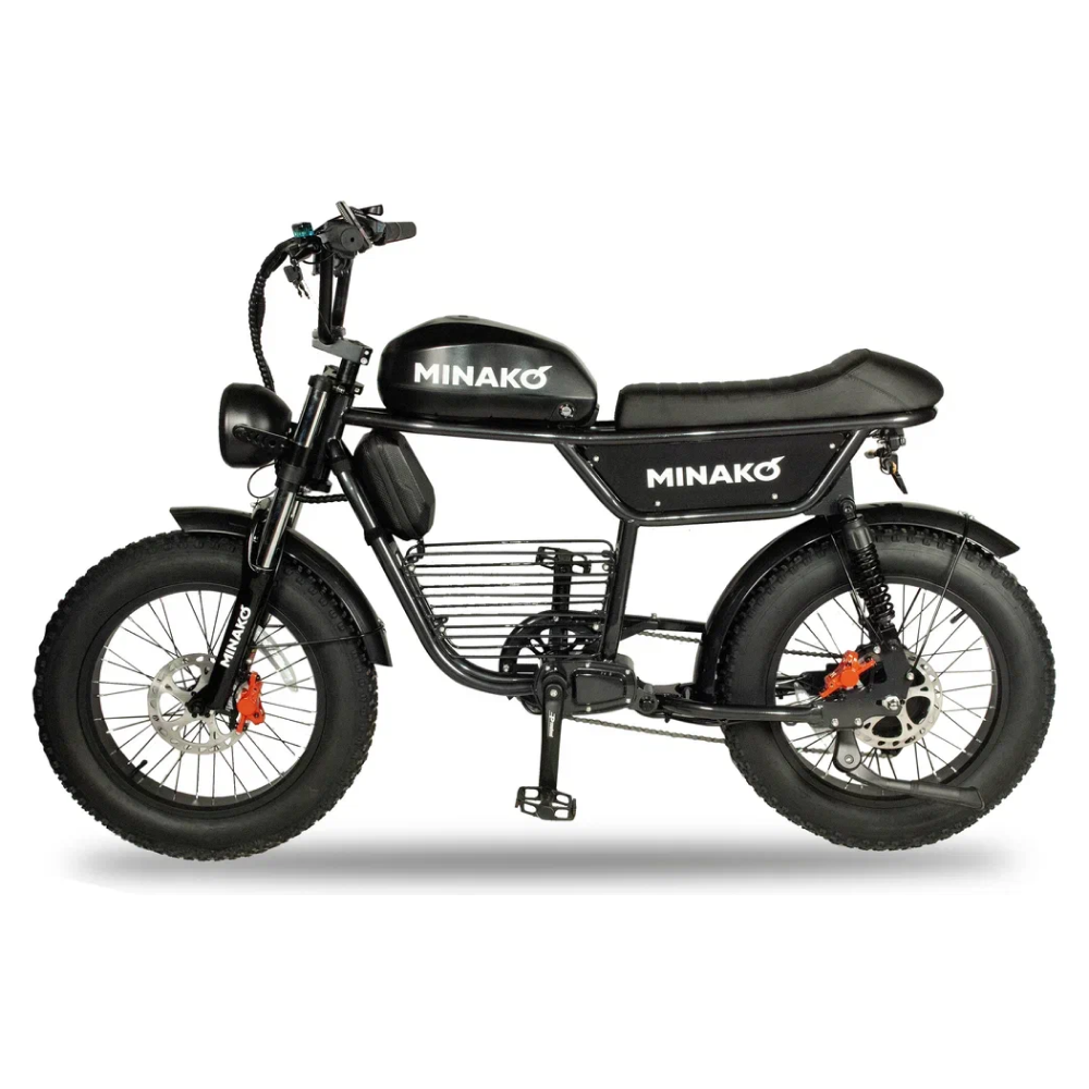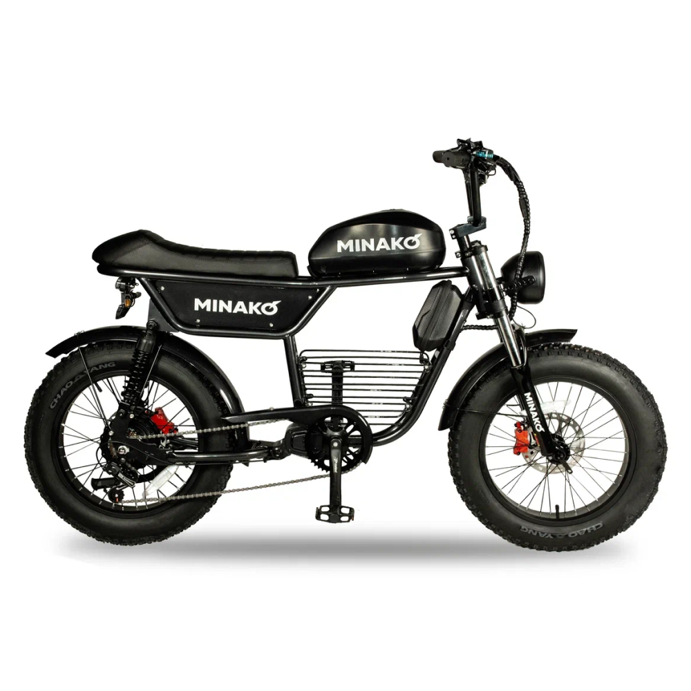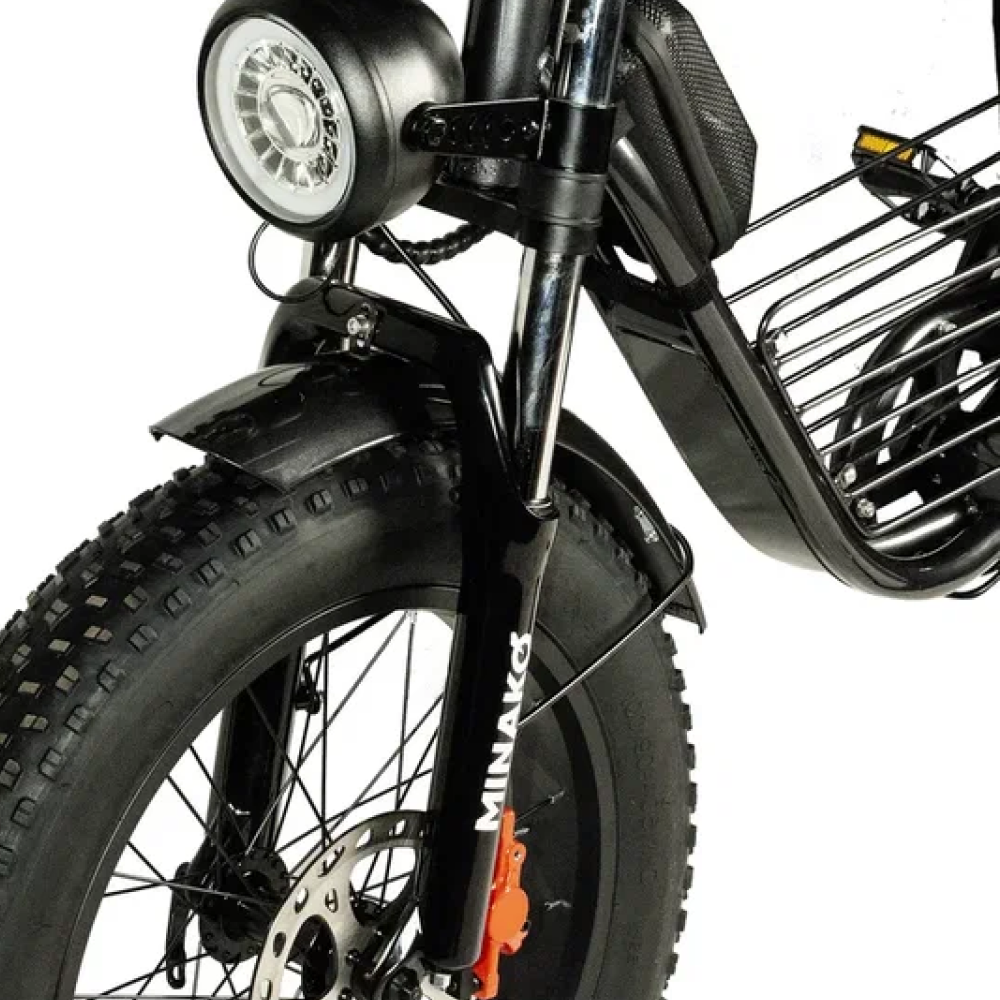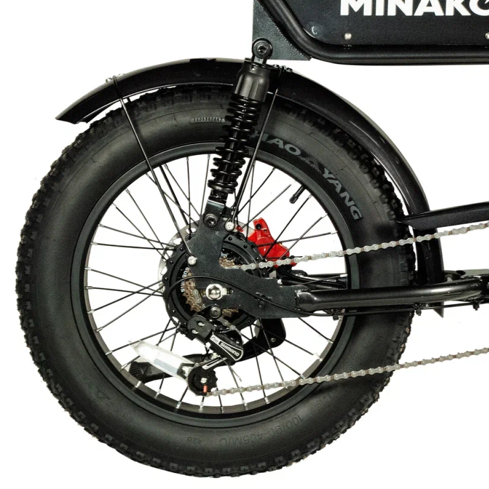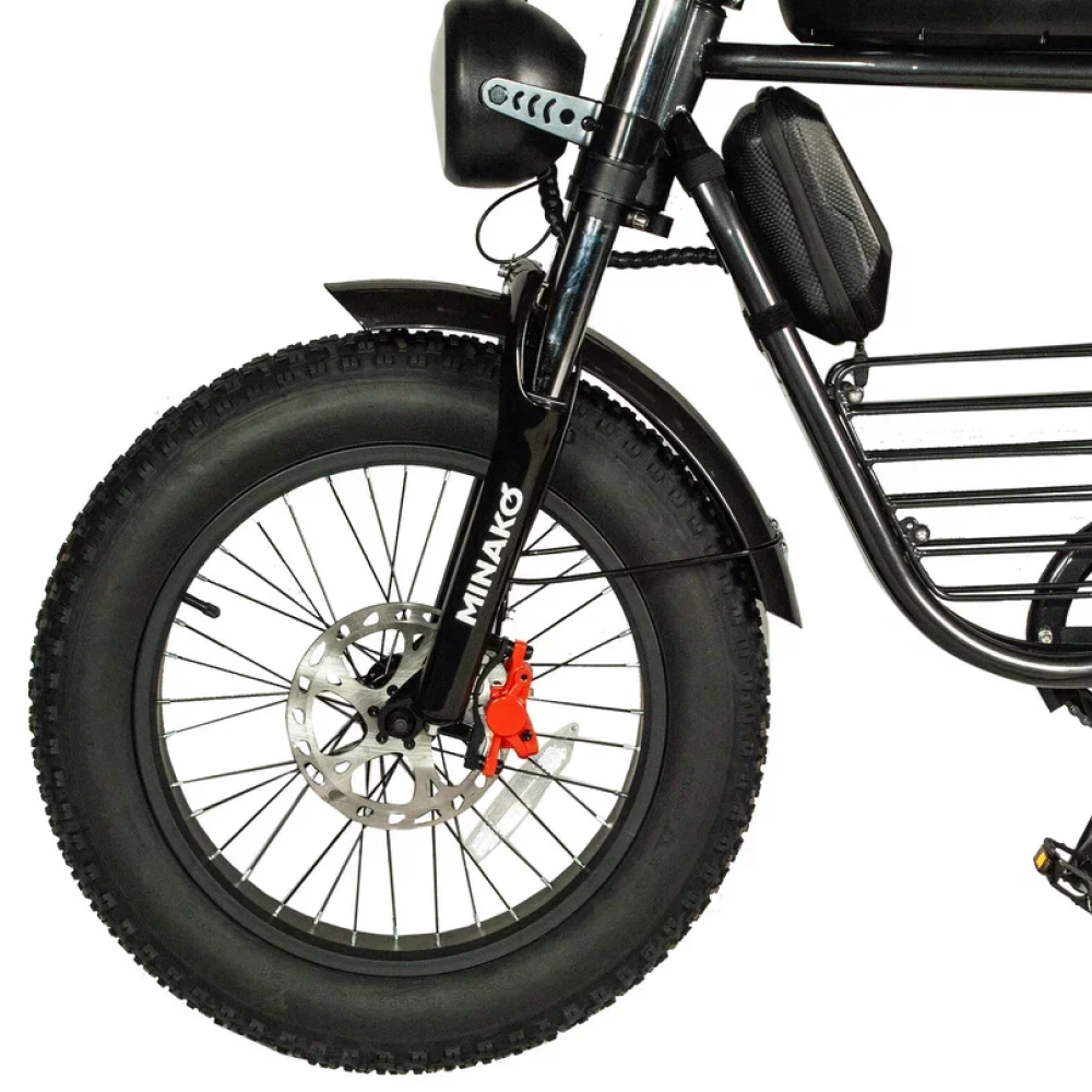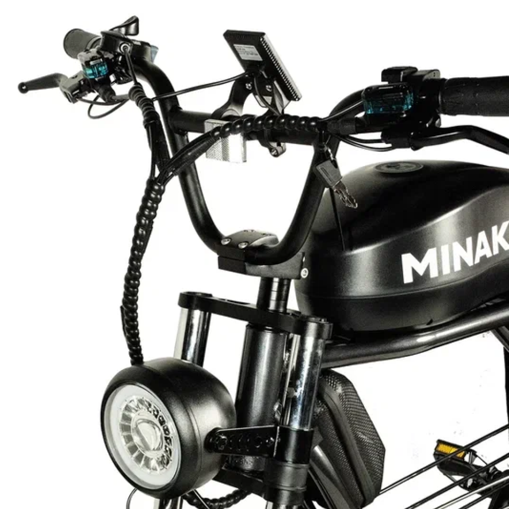 Электровелосипед Minako Bike в черном цвете - это передовой транспортный средство, которое сочетает в себе высокую производительность и надежность.