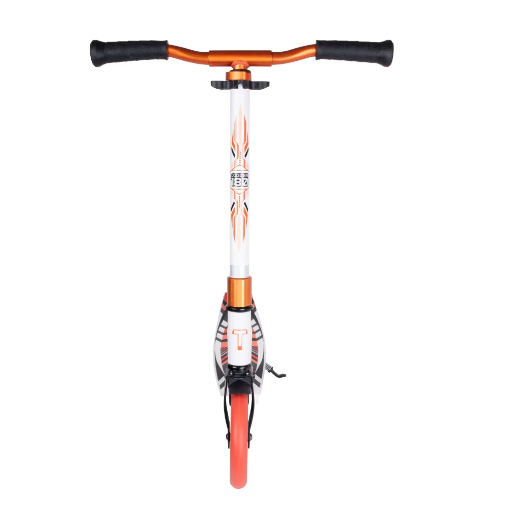 Колесная часть – полиуретановая, накатистая, размером 180 мм, в сочетании с качественными подшипниками Abec 7 гарантирует комфортную езду. Модель оснащена системой складывания Easy Fold, при необходимости может быть минимизирована до желаемых размеров.