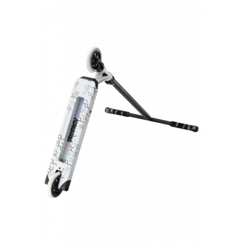 Конструкция самоката изготовлена из облегченного инновационного алюминия, благодаря которому вес составляет 4 кг. При этом максимальная грузоподъемность рассчитана на профи-трюкачей весом до 100 кг. С такими параметрами пользоваться самокатом могут подростки и взрослые экстремалы. Из технических параметров производитель обращает внимание на качество деки, колесной и рулевой части.